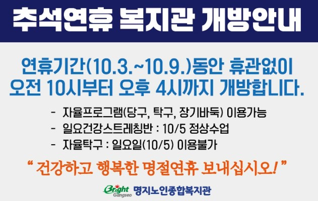 추석연휴 복지관 개방시간 안내 > 공지사항
